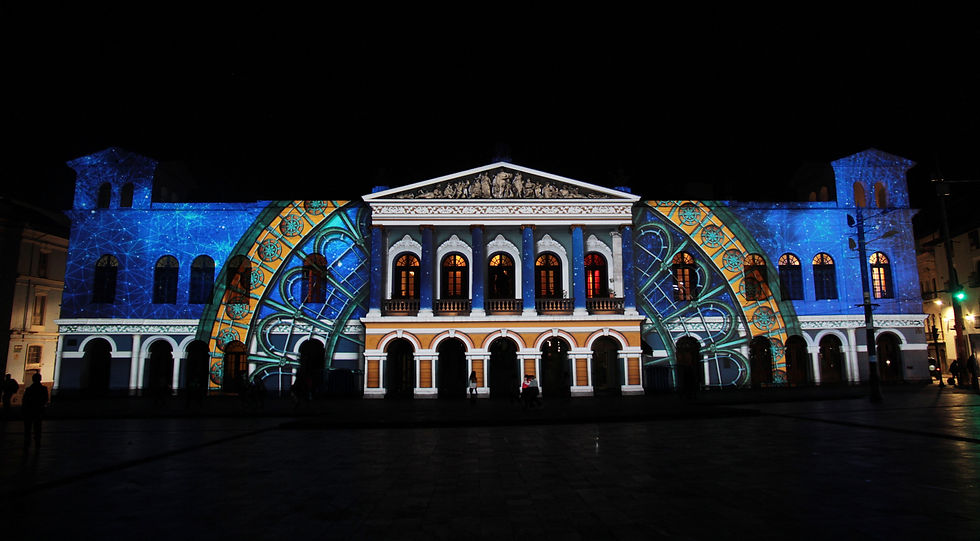 Deux artistes lyonnaises, Camille Gross et Leslie Epzstein, présentes lors de la Fête des Lumières 2016, ont fait le déplacement pour présenter à la capitale équatorienne leur œuvre « Voyages ». Celle-ci prenait place sur la façade du Teatro Sucre.